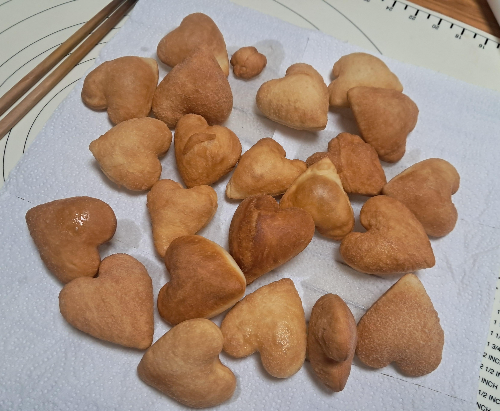 특별한 도구 없이 쿠키 커터 하나로 모양을 낼 수 있고, 발효와 튀김 온도만 잘 지키면 실패 확률이 낮습니다.